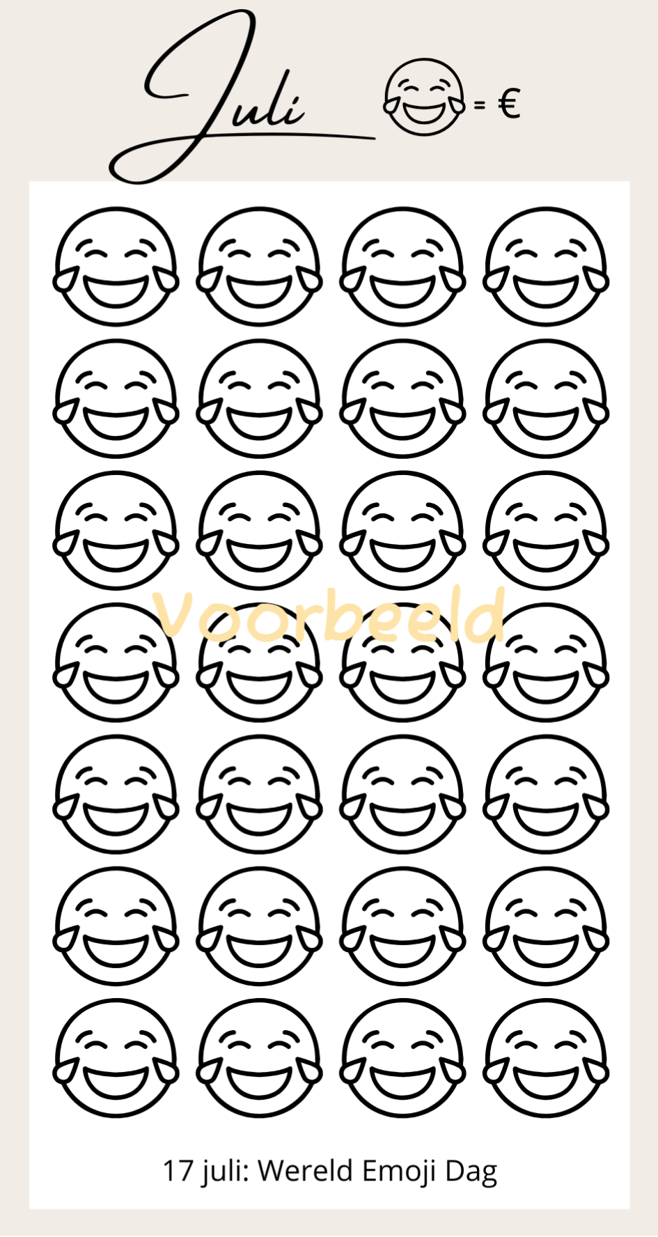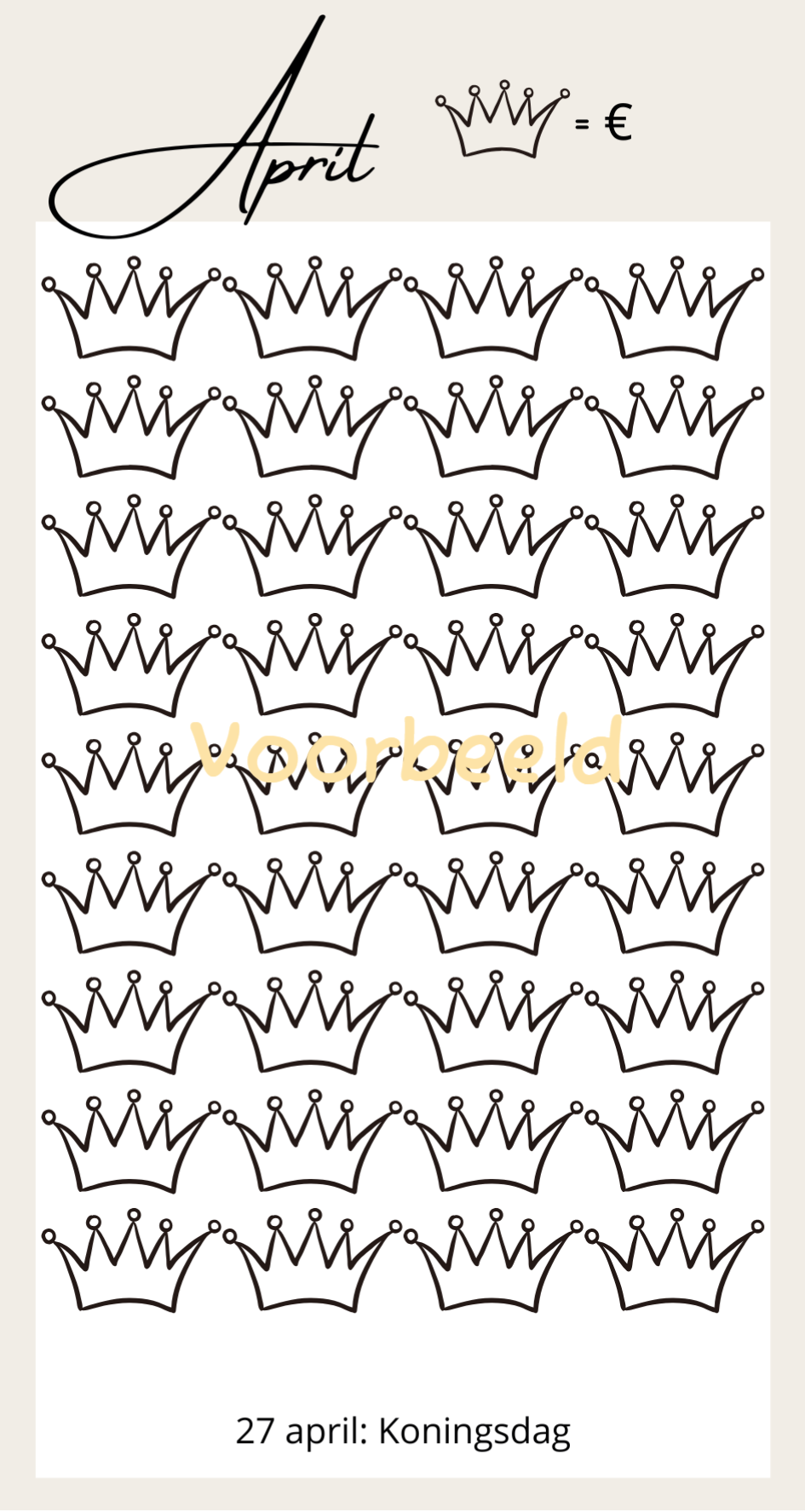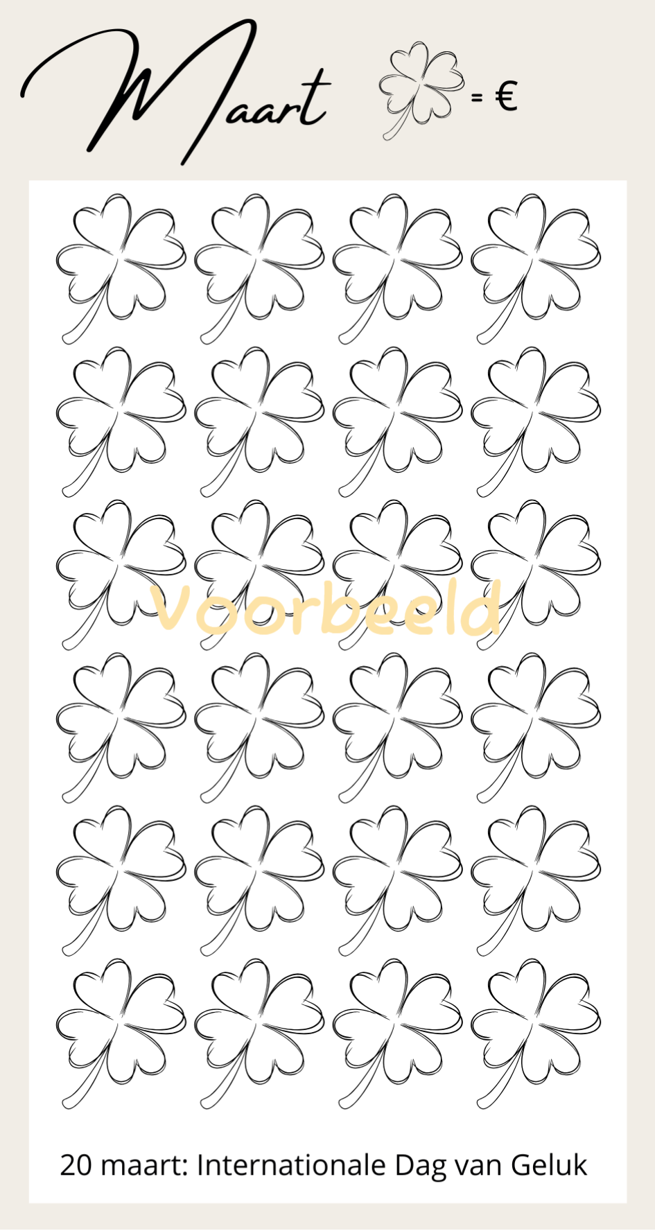 Elke maand heeft zijn eigen unieke, vrolijke illustratie die je kunt inkleuren zodra je weer een bedrag hebt gespaard. Jij bepaalt zelf hoeveel je per keer spaart – groot of klein, alles telt mee.